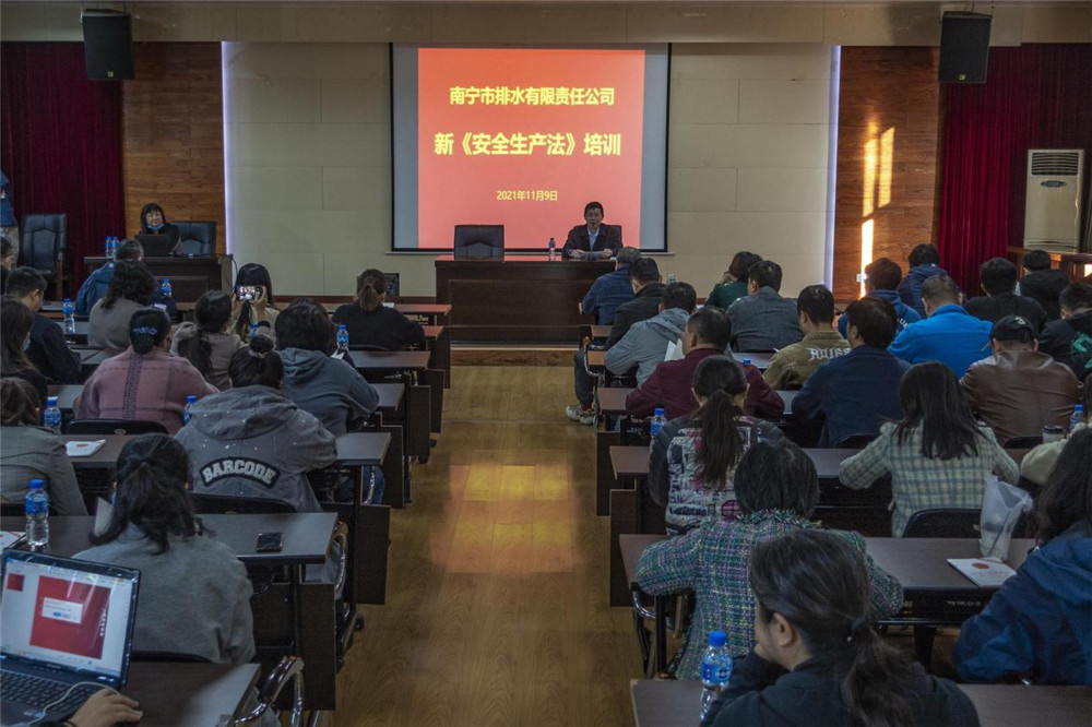 11月9日,排水公司宣貫新《安全生產(chǎn)法》暨“黨員身邊無事故”主題活動(dòng)在江南污水處理廠二樓會(huì)議室召開?;顒?dòng)邀請(qǐng)了高級(jí)工程師、注冊(cè)安全工程師、南寧學(xué)院教師潘金松授課。