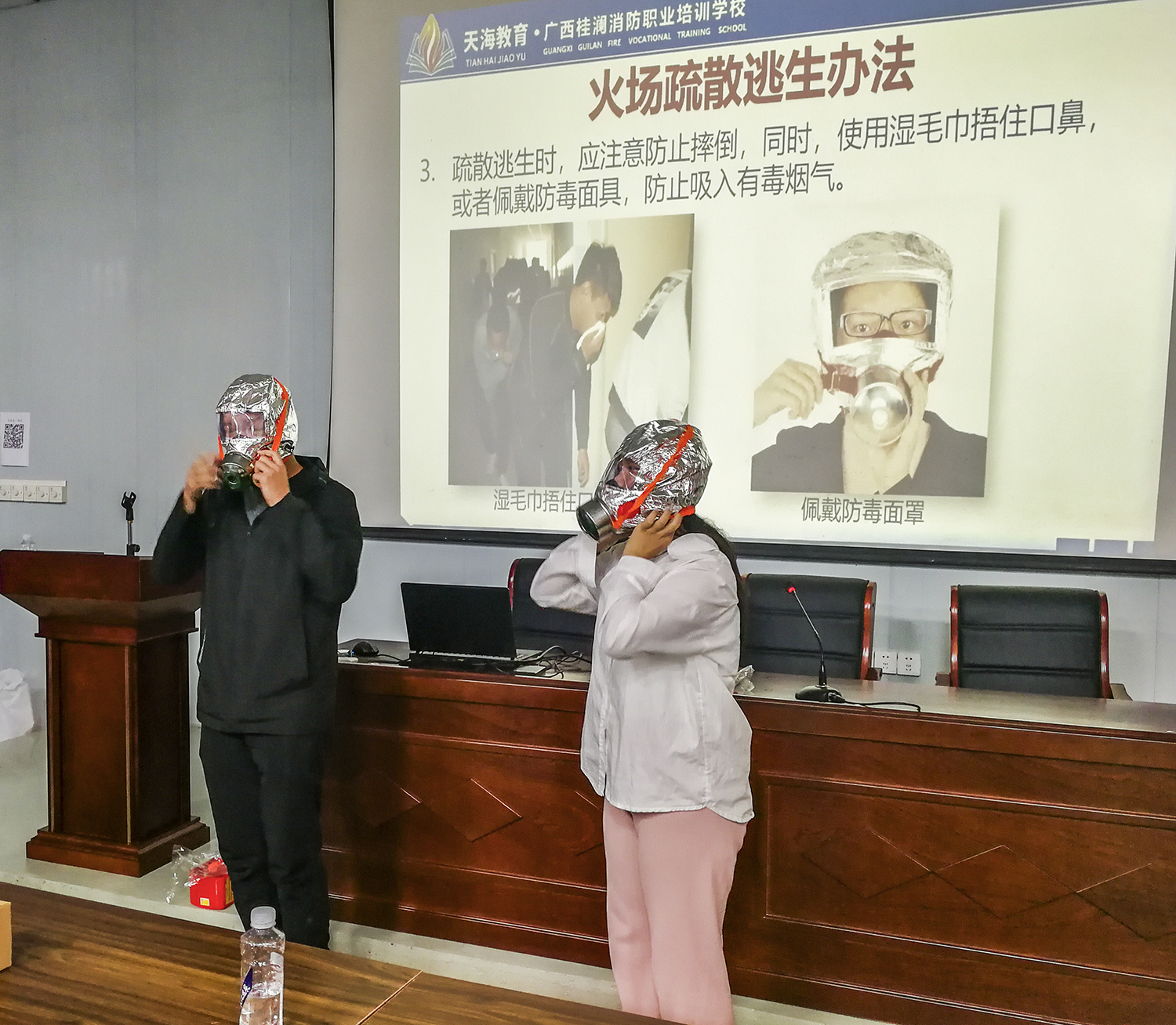 開(kāi)班動(dòng)員結(jié)束后,廣西桂瀾消防職業(yè)培訓(xùn)學(xué)校的老師為大家上了一堂理論與案例相結(jié)合、生動(dòng)且深刻的消防安全知識(shí)教育培訓(xùn)。整個(gè)課程分為課堂授課、現(xiàn)場(chǎng)教學(xué)和實(shí)操演練三個(gè)部分。在課堂授課環(huán)節(jié),消防老師首先通過(guò)PPT課件給大家講解消防法規(guī)、消防基本知識(shí)和消防安全意識(shí)。然后以視頻案例的講解分析和互動(dòng)答疑的方式,詳細(xì)對(duì)“四懂四會(huì)”知識(shí)和逃生技能進(jìn)行講解。這堂培訓(xùn)課不僅加深了大家對(duì)消防安全“四懂四會(huì)”的理解,更讓大家對(duì)火災(zāi)重大危害有了更深的理解,引起了全場(chǎng)的共鳴。
