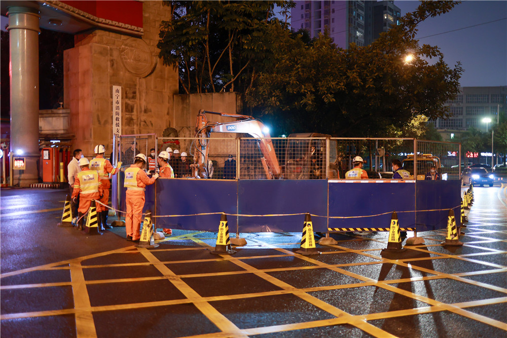 2月16日,佛子嶺路南寧市消防救援支隊(duì)大門(mén)前發(fā)生路面塌陷事故,直接影響消防出警和市民人身財(cái)產(chǎn)安全。公司領(lǐng)導(dǎo)立即做出指示,強(qiáng)調(diào)要立足全市公共安全大局,加班加點(diǎn)集中一切人力物力,力爭(zhēng)在最短時(shí)間內(nèi)完成搶修,確保城市排水運(yùn)行安全。