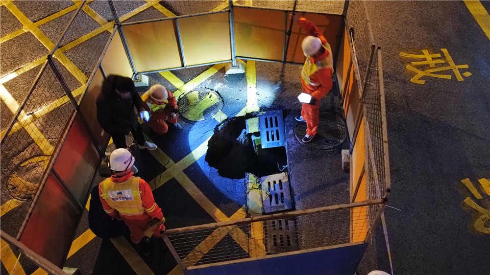 由于搶修位置地下管線(xiàn)復(fù)雜,施工場(chǎng)地狹窄,施工過(guò)程中,既要保障消防車(chē)輛正常出入,又要保護(hù)地下管線(xiàn),同時(shí)陰雨連綿的天氣,給施工造成極大不便。搶險(xiǎn)人員想方設(shè)法,克服重重困難全力推進(jìn),經(jīng)過(guò)連夜奮戰(zhàn),第二天下午16時(shí),已完成塌陷井室修復(fù)、基坑灌注混凝土工作,目前正進(jìn)行混凝土養(yǎng)護(hù),預(yù)計(jì)2月19日前完成最后瀝青路面恢復(fù)工作。