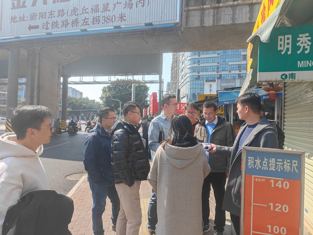 最后,周柏建一行來(lái)到秀田路、明秀路積水點(diǎn)現(xiàn)場(chǎng),仔細(xì)了解積水點(diǎn)狀況及改造計(jì)劃。周柏建指出,可以考慮運(yùn)用永久工程+臨時(shí)工程相結(jié)合的方式解決積水問(wèn)題,以保障汛期市民出行安全。運(yùn)維部門要排查明秀路東路雨水管,及時(shí)清淤疏通,力爭(zhēng)汛期前達(dá)到雨季雨水盡量不壅水至路面的效果,最大程度改善雨季路面積水問(wèn)題。