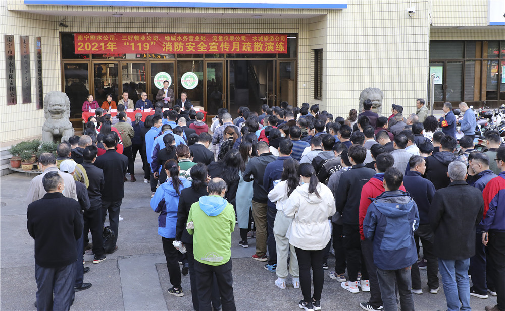 11月23日下午4時(shí),在南寧市江南區(qū)體育路4號(hào)辦公樓,隨著集團(tuán)公司副總經(jīng)理、排水公司董事長周柏建的一聲“開始”,2021年“119”消防安全宣傳月火災(zāi)疏散應(yīng)急演練活動(dòng)正式拉開序幕。
