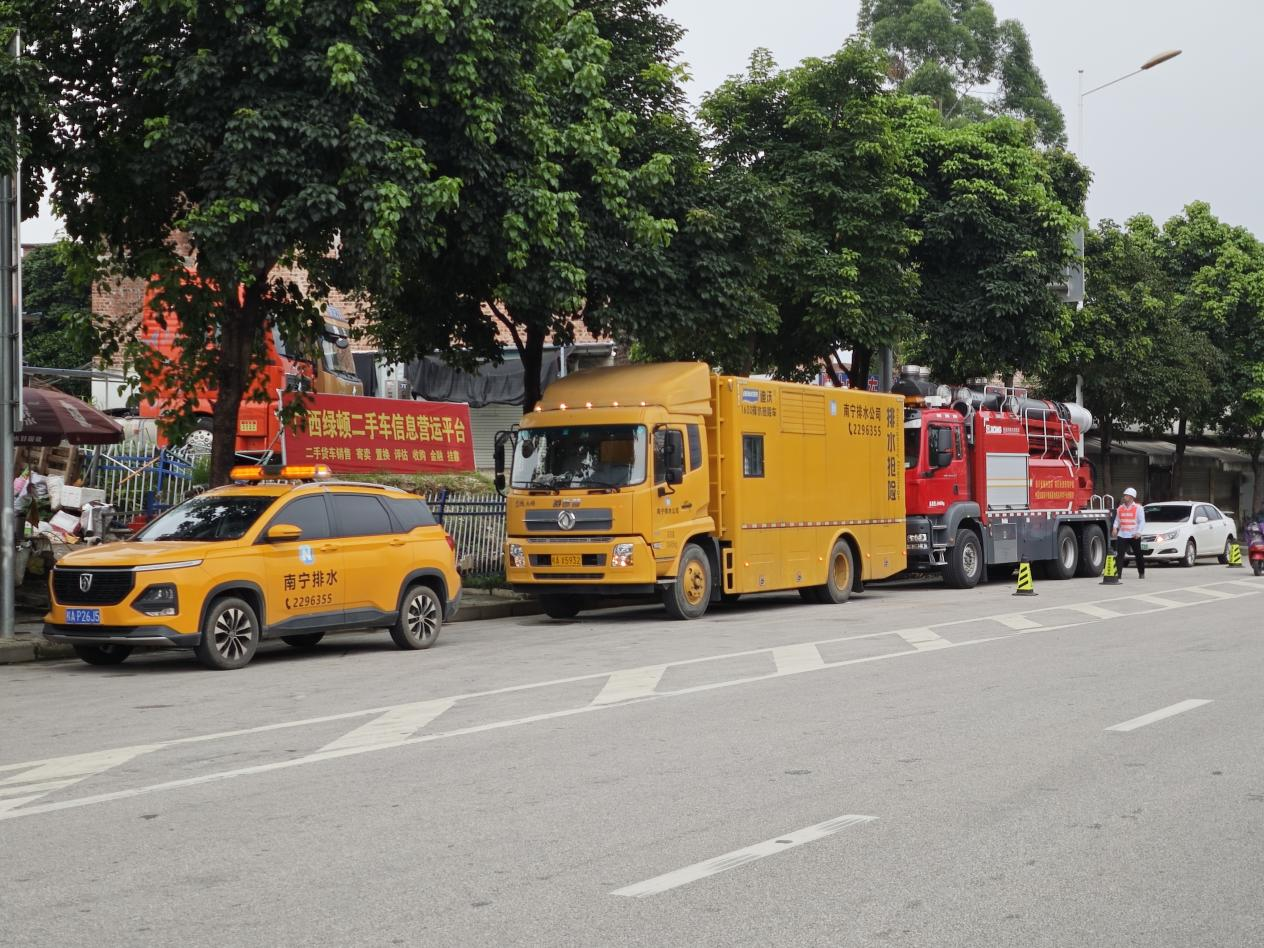 在南寧市第十中學(xué)門口上津路,5輛排水搶險車輛,3套抽升設(shè)備,3組大型處置單元連續(xù)作戰(zhàn),24小時布控在上津路沿線進行值守保障。由于周邊路網(wǎng)尚未配套齊全,第十中學(xué)上津路出入口為該考點唯一出入口,也是上津路的低洼點,積水風(fēng)險較大。降雨來臨時,值守的排水工作人員按照研判方案分別在沙井路上津路口、三津上津路口、江南綜合交易中心等處開展抽排作業(yè),并在上津路十中門前打開井蓋、篦子加快排水。同時組織抽排作業(yè),降水位騰庫容,確保雨水管道處于最低液位運行。截止高考結(jié)束前,已持續(xù)值守、處置超過60小時,十中路段未發(fā)生積水內(nèi)澇事件。