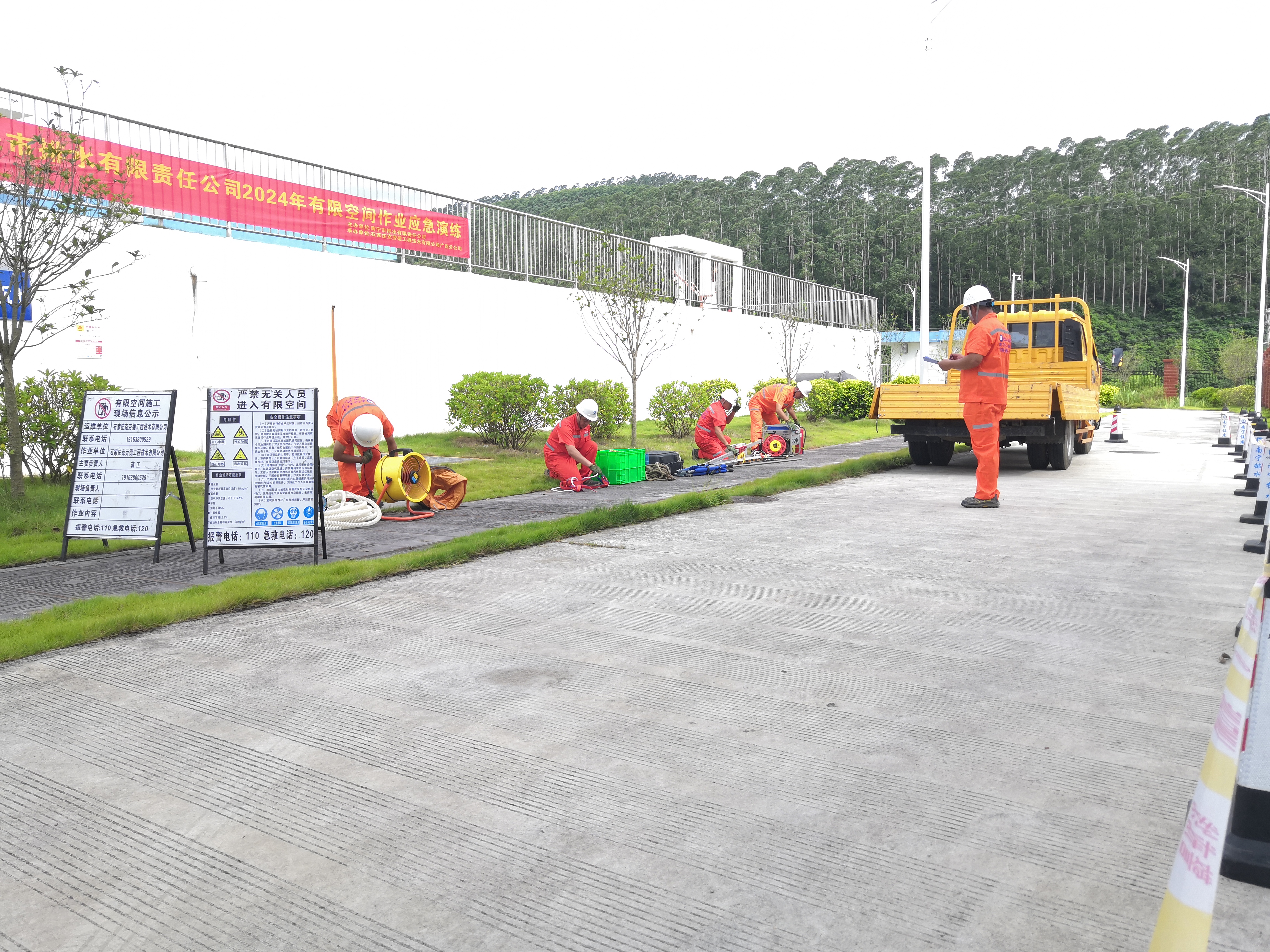為進一步提高進入有限空間作業(yè)相關(guān)人員的安全生產(chǎn)意識和自我保護意識,切實保障施工作業(yè)人員的生產(chǎn)安全,防止窒息、中毒等生產(chǎn)安全事故的發(fā)生,7月17日上午,市排水公司在南寧市江南區(qū)數(shù)字科技學院水質(zhì)凈化廠舉行有限空間作業(yè)事故應急救援演練。