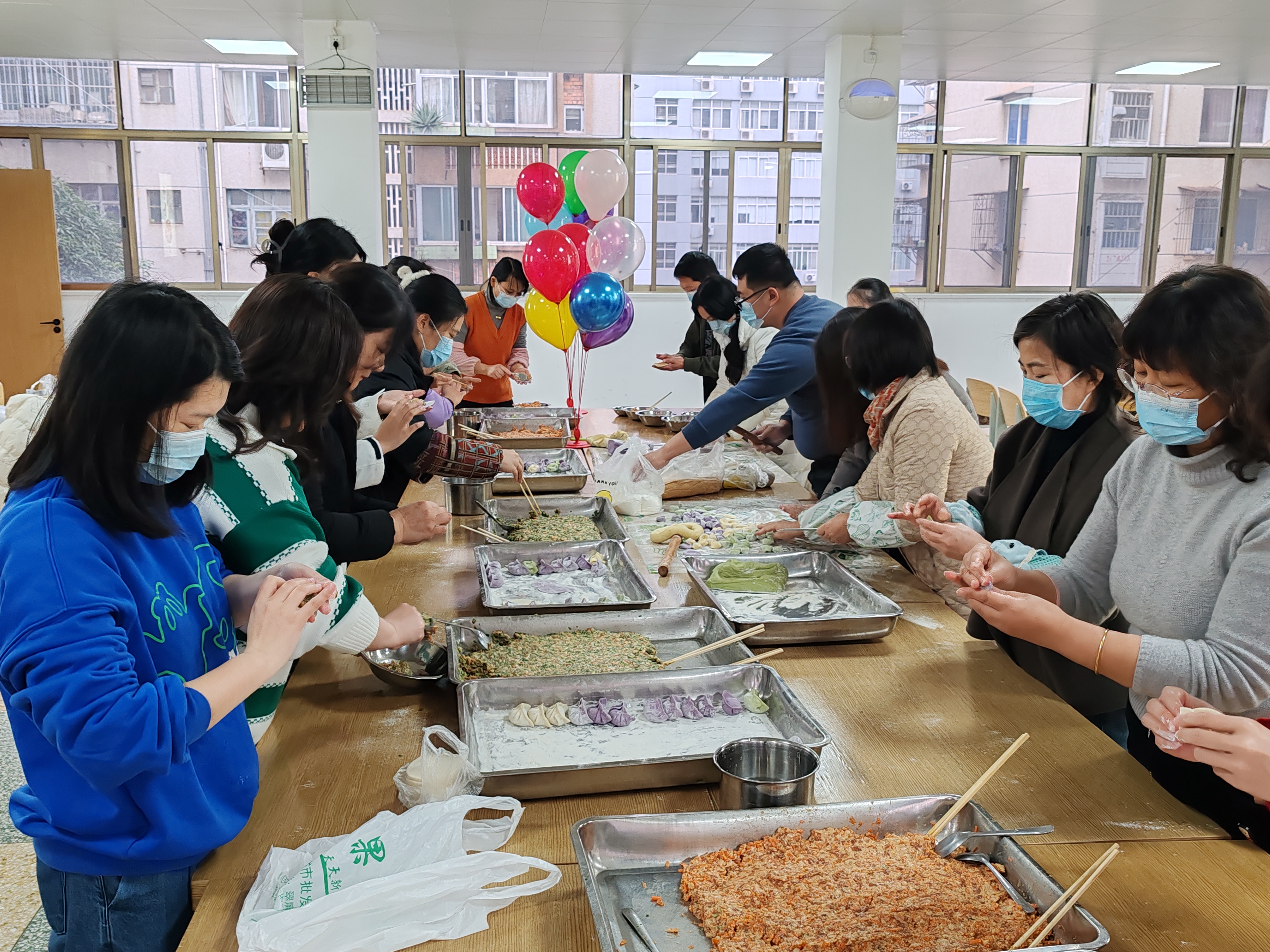 活動(dòng)現(xiàn)場(chǎng),職工們熱情參與,配合默契,有人揉面,有人和餡,有人搟皮,有人包餃子,每個(gè)人都忙得不亦樂(lè)乎,紛紛展現(xiàn)自己的廚藝。大家相互交流著包餃子的各種經(jīng)驗(yàn),有些面點(diǎn)“老師傅”還給新手傳授搟面皮和包餃子的技巧,現(xiàn)場(chǎng)洋溢著“家”的味道、“節(jié)”的氛圍。